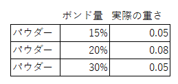 さて、粉の重さを計ってみたところ、こんな感じです。