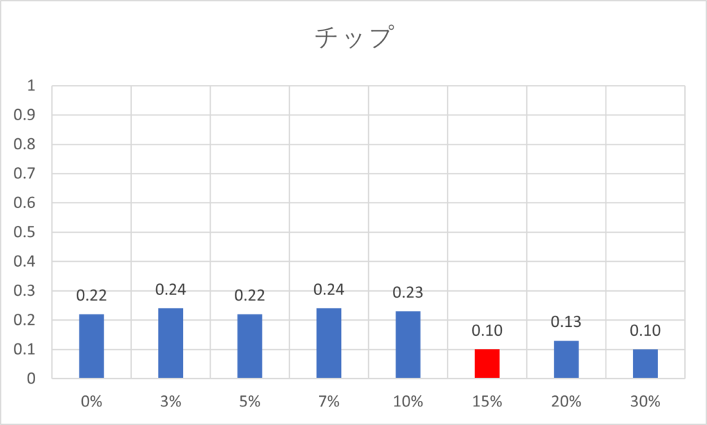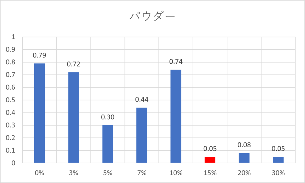 下のグラフを見てもらうと分かってもらえると思うのですが、何と、15%ほど入れると大きく差が出ることが分かりました。