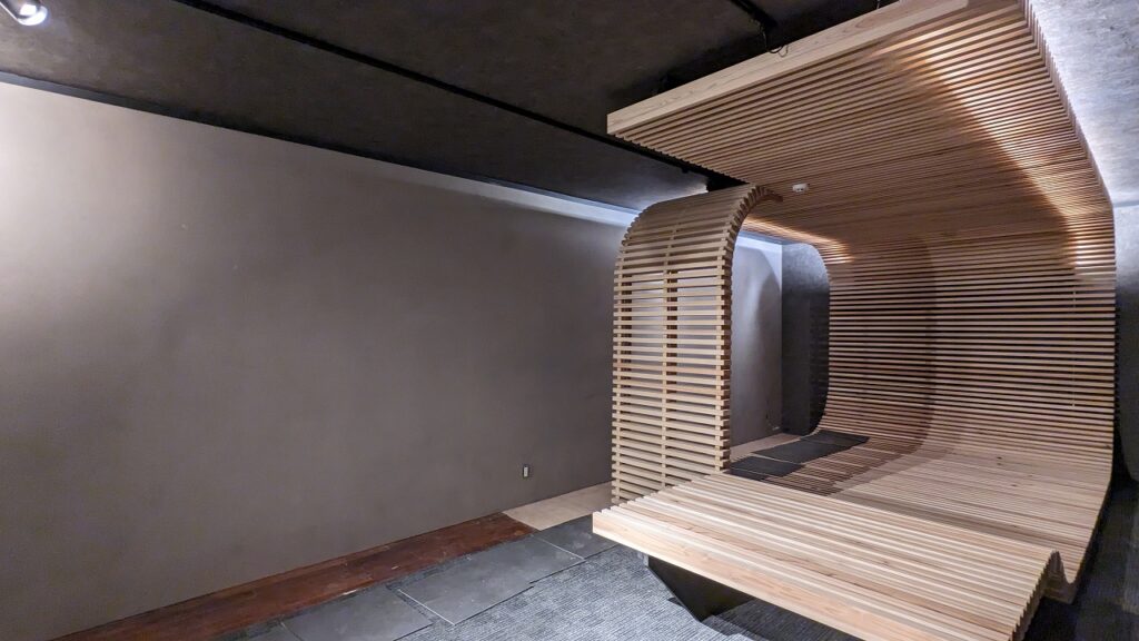 明るい木目建具との対比により、空間に奥行きと静けさが生まれました。