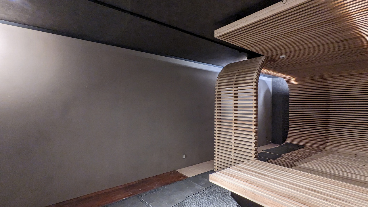 明るい木目建具との対比により、空間に奥行きと静けさが生まれました。